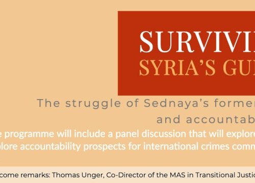 Amnesty International, Impunity Watch and the Geneva Academy, panelists will explore the role of current justice and redress initiatives in the contexts of universal jurisdiction and in the documentation of violations. They will also discuss accountability prospects for international crimes committed in Syria from the perspective of victims and international actors.