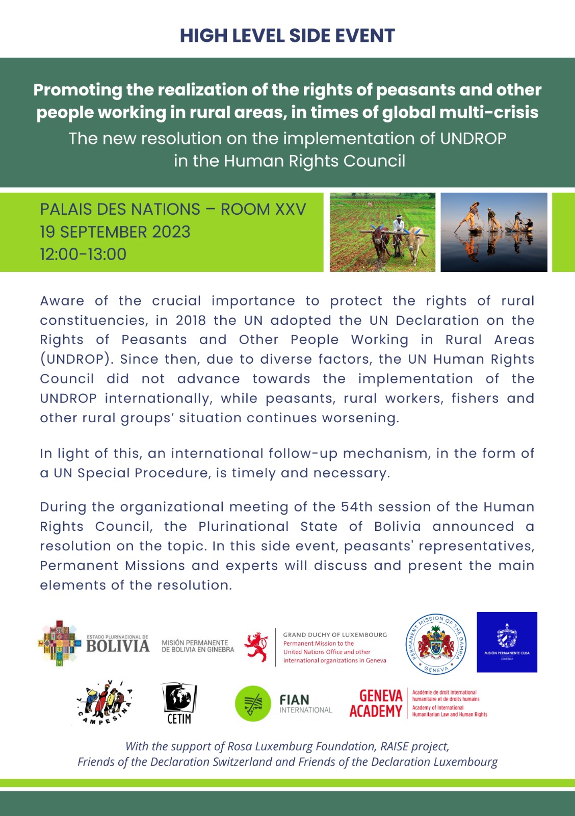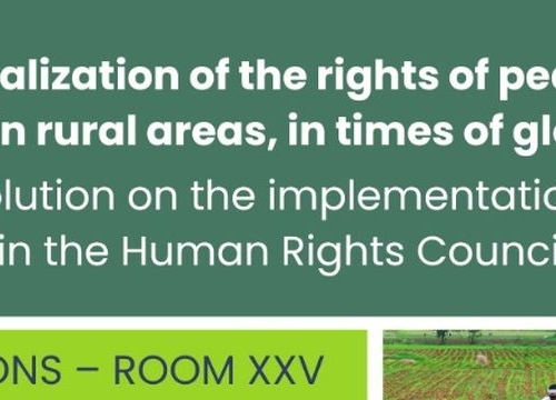 In this HRC side event, peasants' representatives, Permanent Missions and experts will discuss and present the main elements of the resolution, including the creation of a new UN Special Procedure on the rights of peasants.