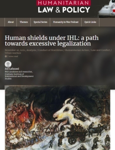 Her doctoral research focuses on the complex legal landscape regulating the use of armed force in occupied territories and on questions of conflict classification.