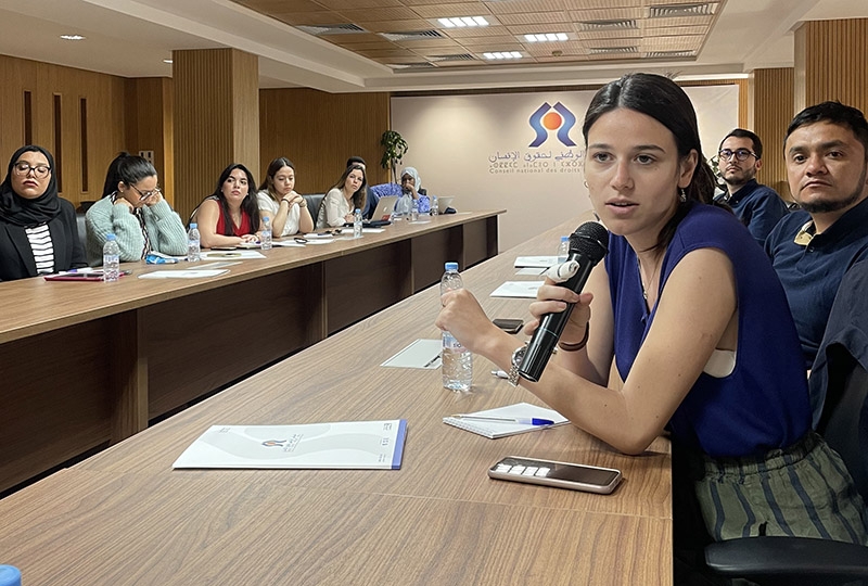 The third day started with a visit to the Centre d’Études en Droits Humains et Démocratie (CEDHD) in the morning where students heard about the transitional justice process from a civil society perspective, the role of NGOs (specifically the CEDHD), the work they do, and the challenges they face. In the afternoon, the group visited the Delegation of the European Union to Morocco to hear about the EU engagement with Morocco on topics such as human rights, civic space and justice, and the way they support the work of NGOs and the National Human Rights Council.