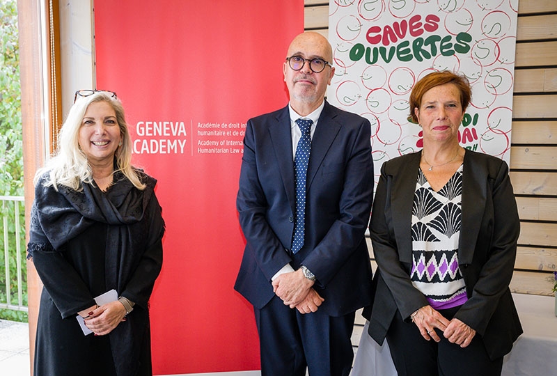 Mr Alberto Velasco, President of the Grand Council, Ms Guylaine Antille, Mayor of Bernex, and Mr Christian Bovet, President of the Geneva Academy’s Board, attended the ceremony, along with a small number of guests.
