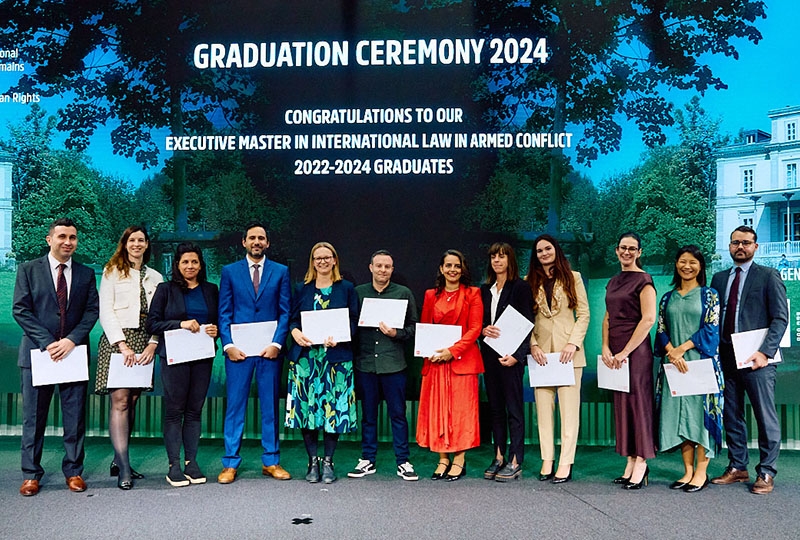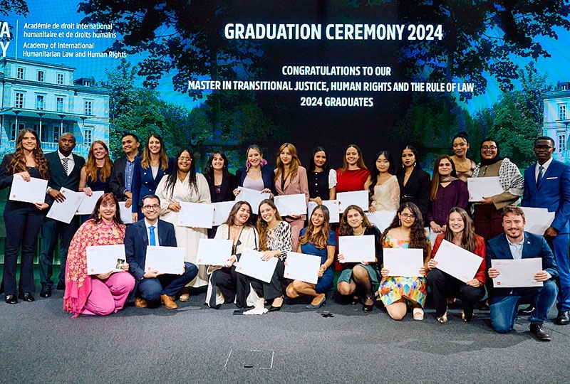 This week, 104 students graduated from our LLM in International Humanitarian Law and Human Rights, Master in Transitional Justice, Human Rights and the Rule of Law, and Executive Master in International Law in Armed Conflict. This is a key milestone for our students, and in addition to the hundreds of families and friends present in the room, 170 people joined the celebration online.