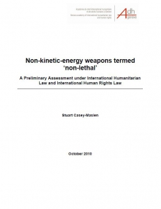 Non-kinetic-energy (NKE) weapons inflict harm through the emission of different forms of radiation or sound, diffusion of chemical or biological agents or transmission of electricity, rather than the application of kinetic energy possessed by a fragment, bullet or other projectile. NKE weapons include directed-energy weapons (e.g. laser and millimetre-wave weapons), bio-chemical incapacitants and irritants and electrical weapons (e.g. Taser® and acoustic weapons such as the Long Range Acoustic Device – LRAD).